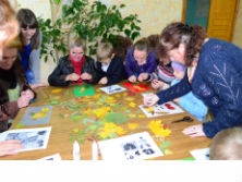 А на творческой мастерской «Коллекция идей» ребята с интересом делали поделки из природного материала. Они приложили усилие, проявили свою фантазию и творческое мастерство и из простых опавших листьев создали свои маленькие «шедевры». Можно было увидеть аквариум с рыбками, ёжика с грибами, яркого попугая и многое другое.
