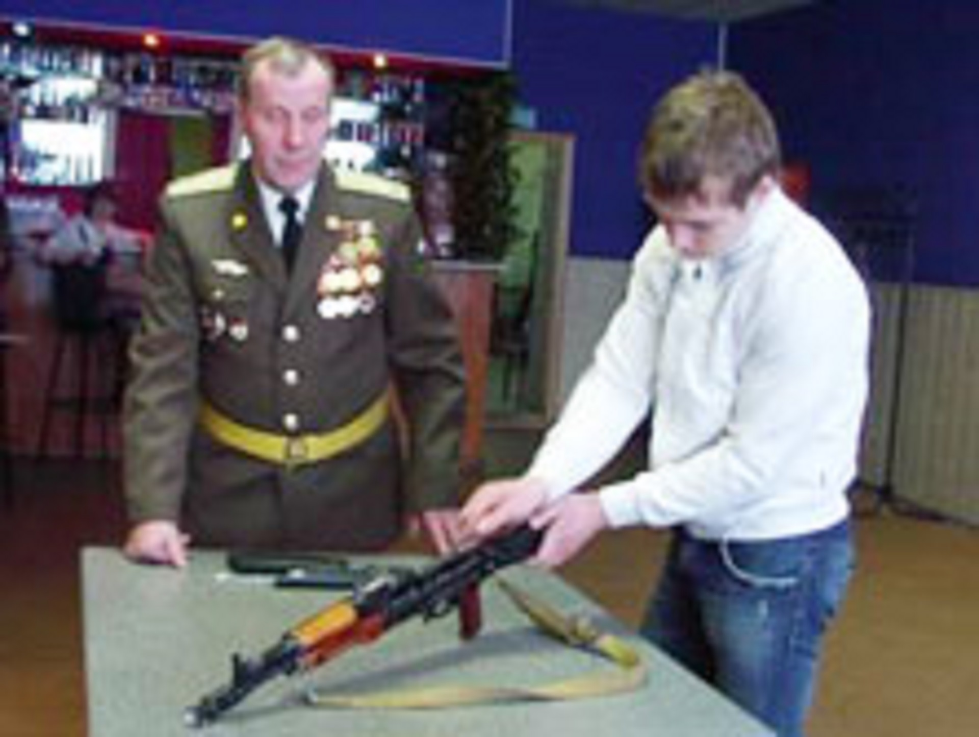 Далее будущее солдаты встретились с представителями районной администрации и работниками молодежной сферы. Юношам была предоставлена возможность продемонстрировать сборку-разборку АКМ-105 на время. Инструктаж проводил руководитель военно-патриотического клуба «Витязь» В.В. Кудряшов, ветеран вооруженных сил, гвардии подполковник воздушных десантных войск. Он более 30 лет отслужил в армии и считает, что служить нужно честно, достойно, исполнять приказы командиров и не забывать родных и близких. Напутственную речь произнес заместитель главы администрации муниципального района город Нея и Нейский район И.В. Вольченко. Сердечные слова произнесла заведующая отделом культуры Т.Б. Слащева, которая присутствовала как мама молодого солдата: «Все время пока вы несете свою службу, ваши родители просыпаются и засыпают с мыслью о вас». Полгода назад она проводила в армию своего сына, который сейчас служит во Владимире. Начальник отдела призыва В.В. Чернов вручил призывникам первые повестки. Двое нейчан будут нести службу в роте почетного караула в Москве.