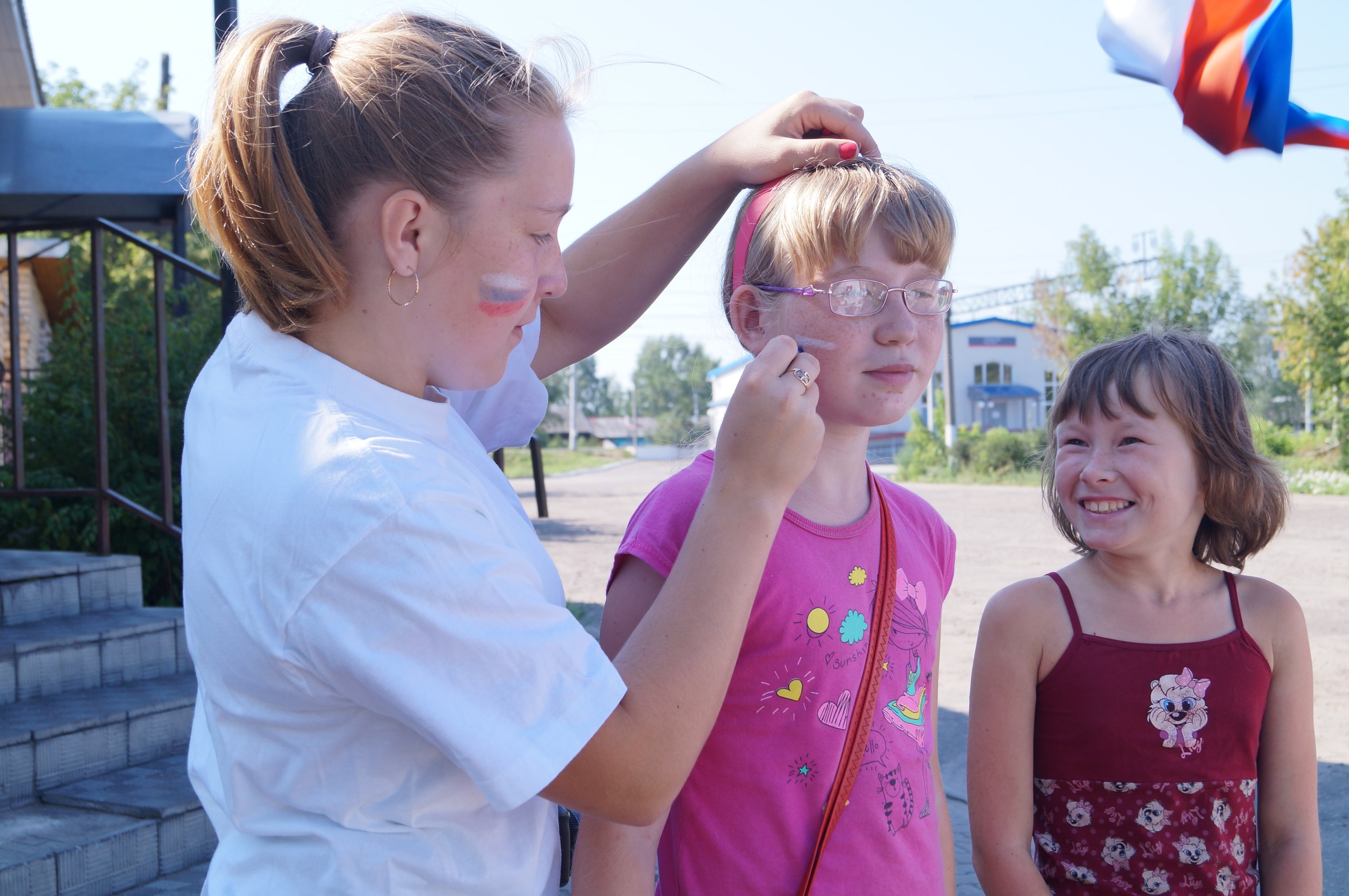 Праздничную атмосферу акции придавали молодежные патриотические музыкальные композиции и флаги. Всем желающим волонтеры наносили на лицо аквагрим в виде Российского триколора. Волонтеры раздавали брошюры, в которых рассказывалось о хронологии событий становления Российского флага, о правилах использования флага.